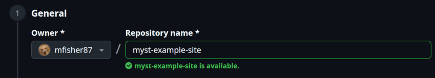 Select your username as the owner, and enter myst-exercise as the repository name.